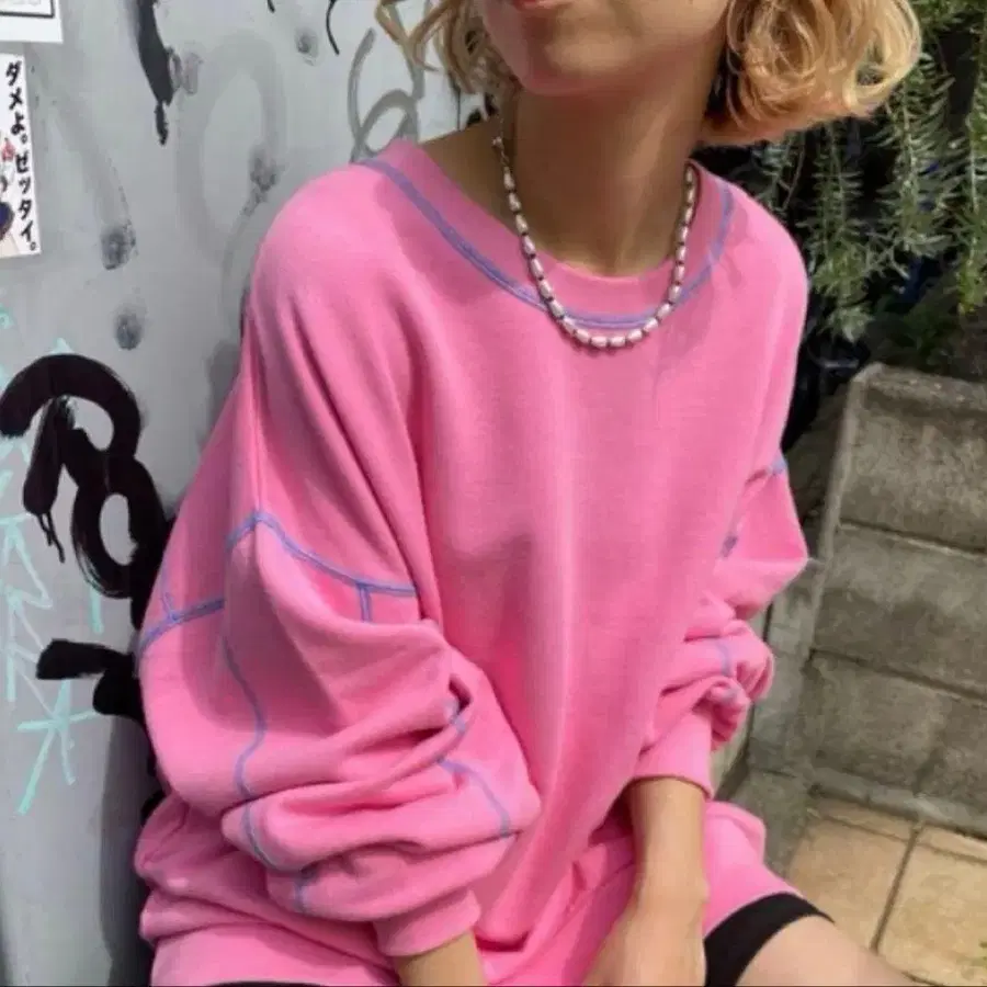 헬로 샌프란시스코 핑크 맨투맨 오버 사이즈 F 차오패닉