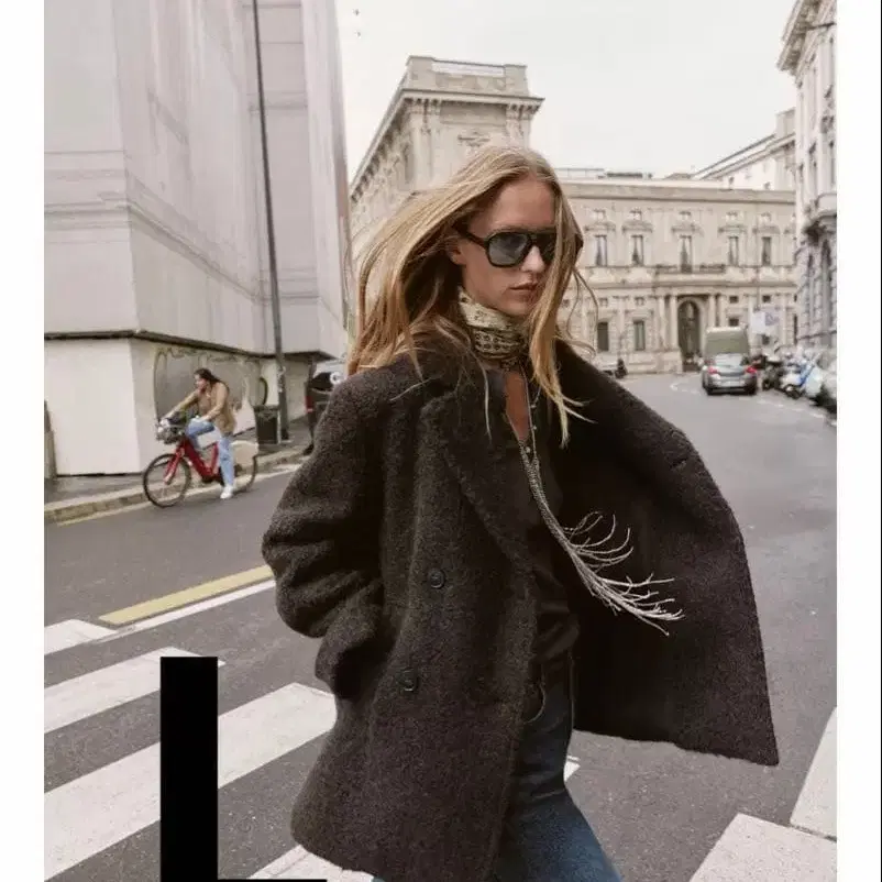 새상품 ZARA 부클 더블 프레스 미디 기장 코트 브라운 L 자라