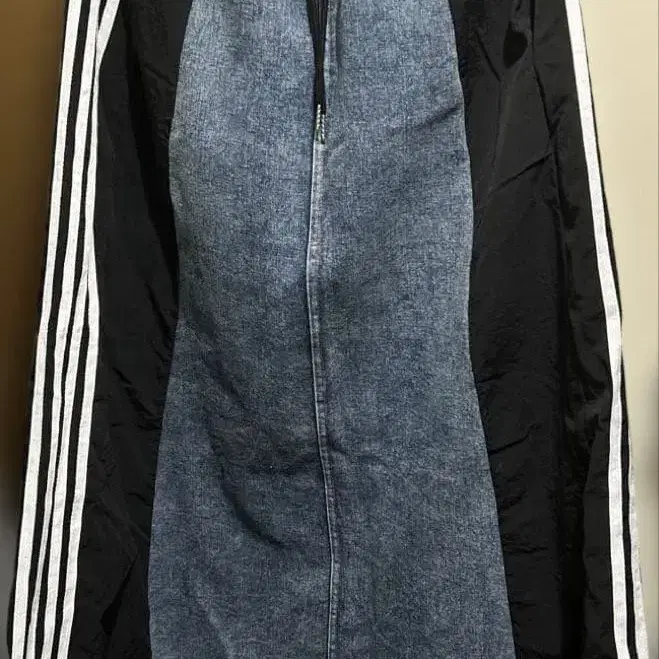 팔베 데님 도킹 롱 스커트