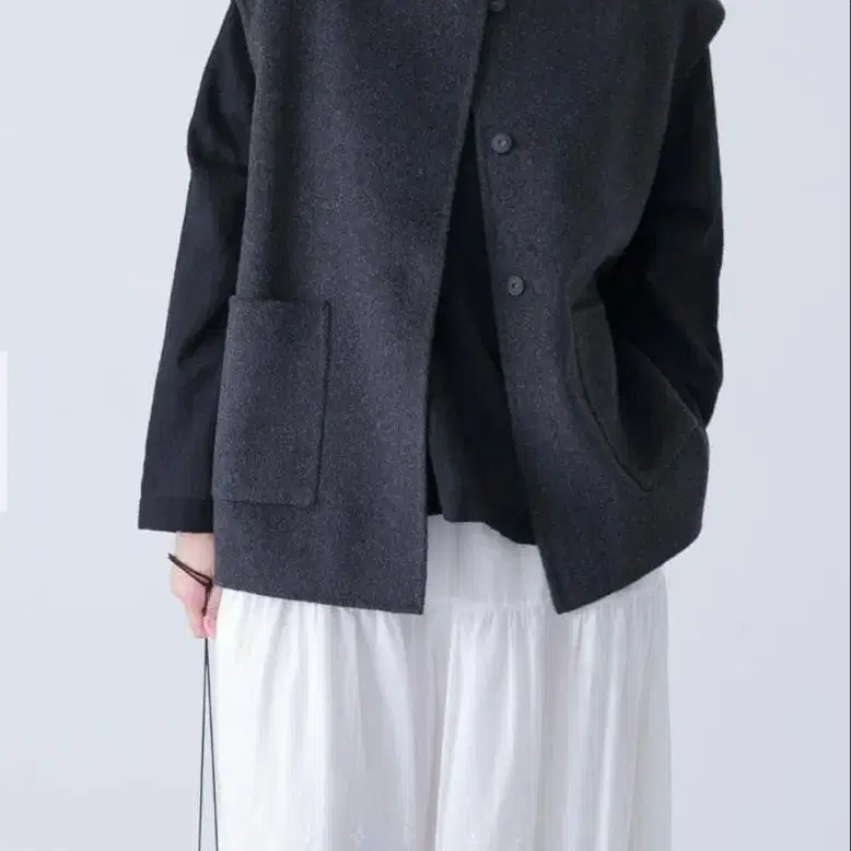 이번 시즌 새상품급 카구레 울 리버 베스트 차콜 그레이 kagure