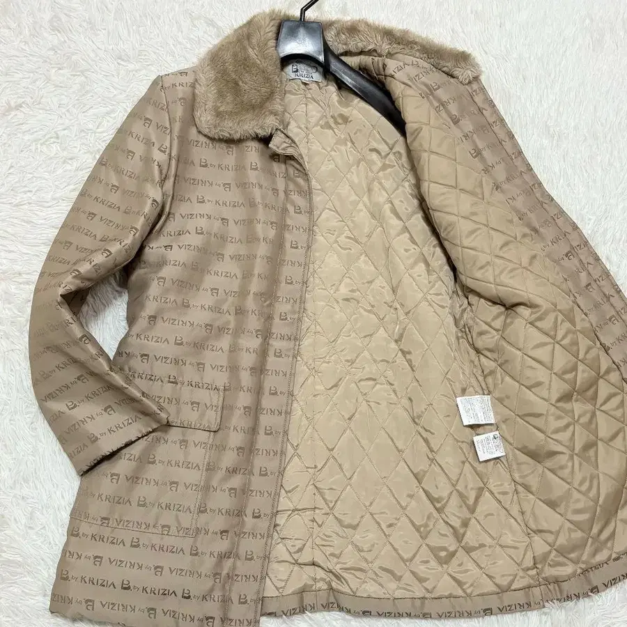 새상품급 Krizia 2way 퀼팅 코트 옷깃 퍼 올 로고 무늬
