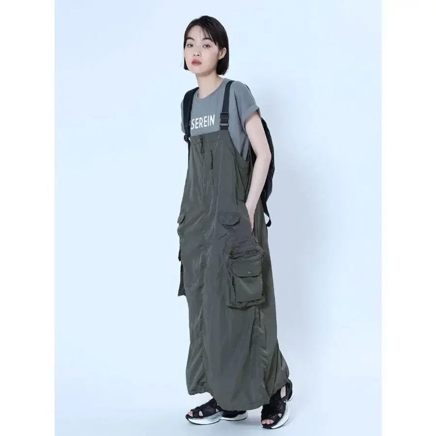 lasud 셔링 디자인 오버롤 스커트 차콜 그레이