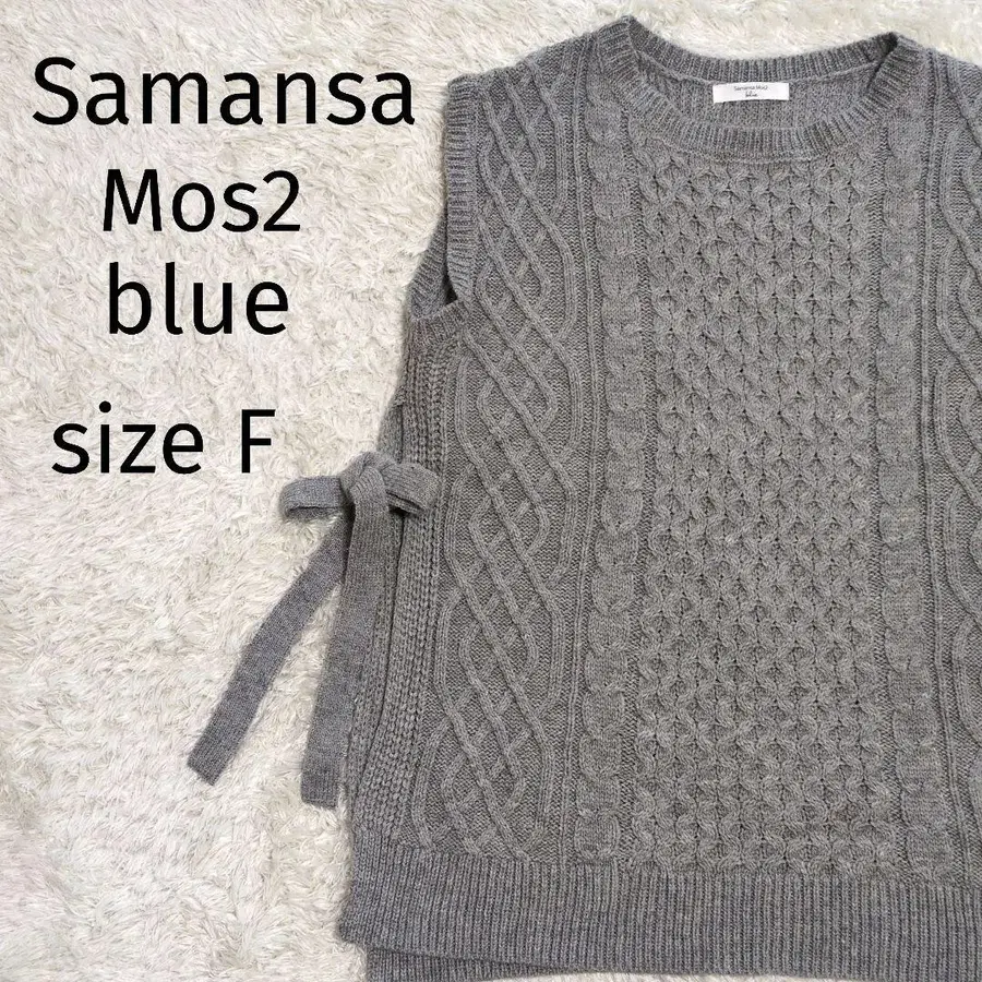 사만다 모스모스 블루 케이블 짜임 니트 베스트 그레이 F