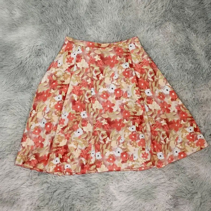 언타이틀 여성용 무릎 기장 플레어 스커트 M 꽃무늬 핑크 화려함