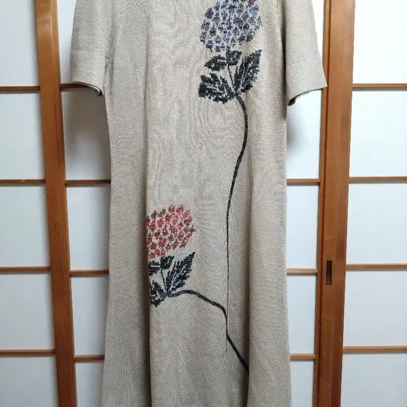 사이토 토요코 꽃무늬 자수 반팔 무릎 기장 원피스