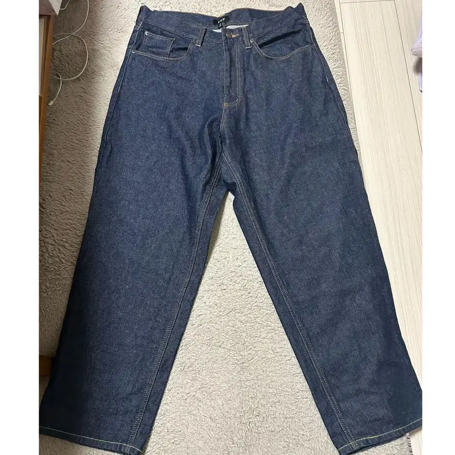 다크 블루 색상의 테이퍼드 데님, 사이즈 34의 HUF 제품입니다.