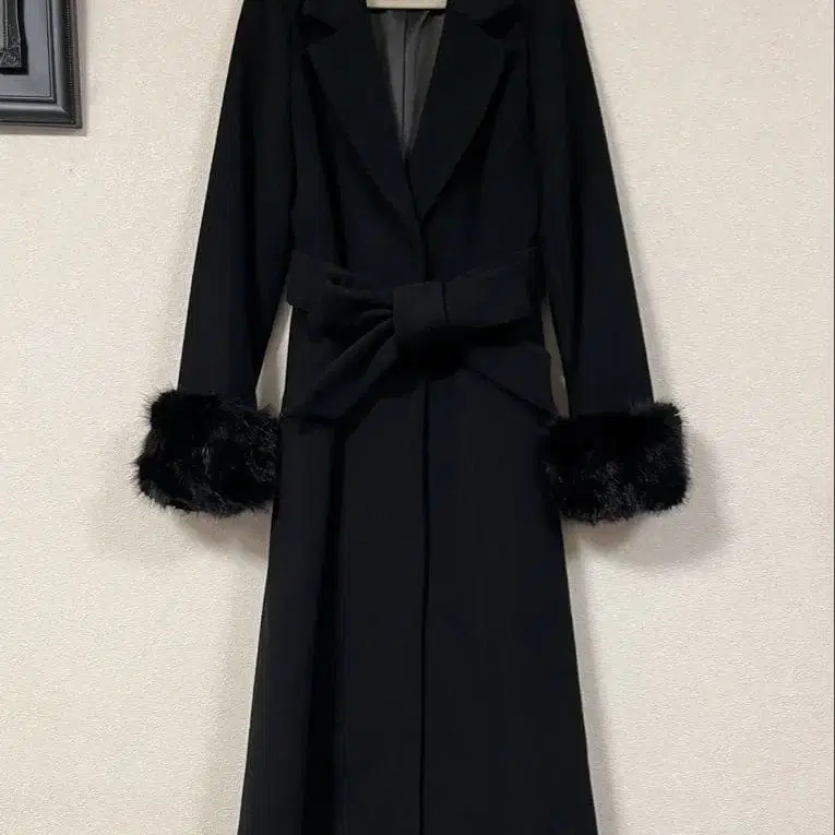 리엔다 블랙 롱 코트 소매 퍼 포함