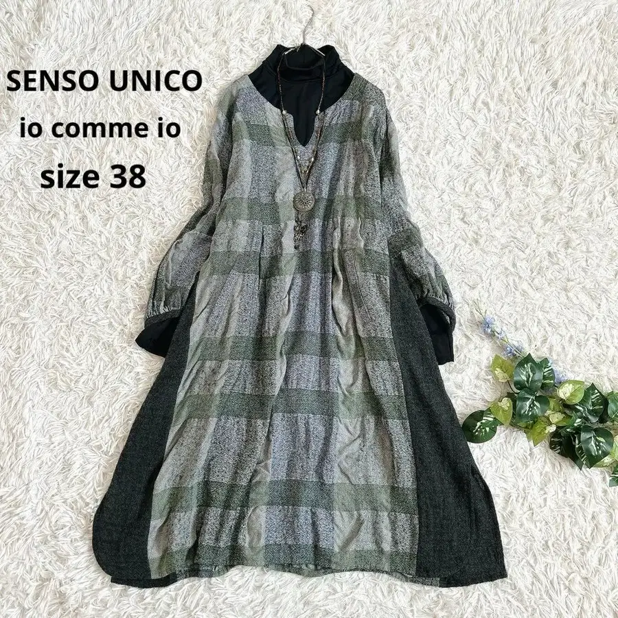 새상품급 센소유니코 긴팔 롱 원피스 사이드 절개 체크 스키퍼 M