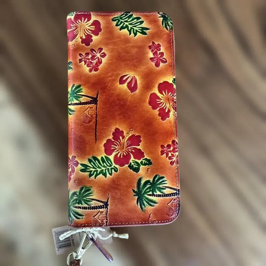 미사용 새상품, 하와이안 프린트 가죽 장지갑