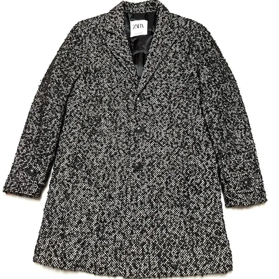 컨디션 최상 자라 체스터 코트 멜란지 트위드 M 블랙