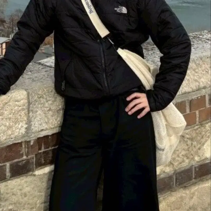The North Face 블랙 다운 재킷 짧은 기장