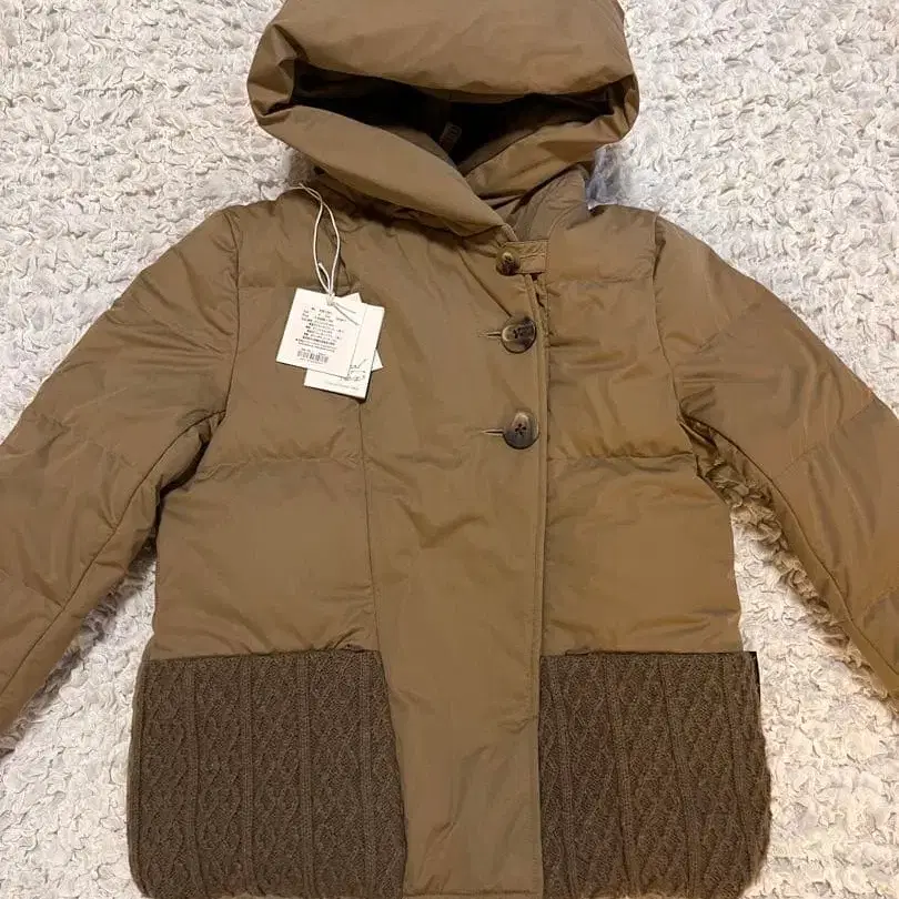 소매와 포켓이 니트 소재로 되어 있어 매우 귀엽고 고급스러운 다운입니다.
