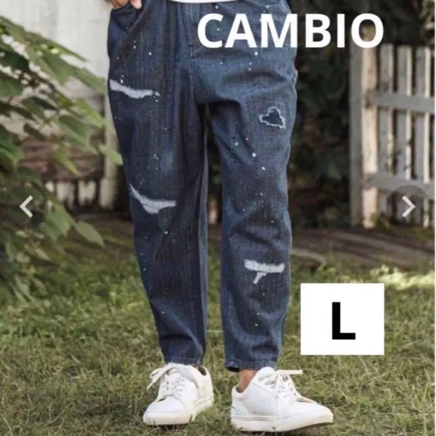 새상품 CAMBIO 헤링본 데님 페인터 팬츠 L