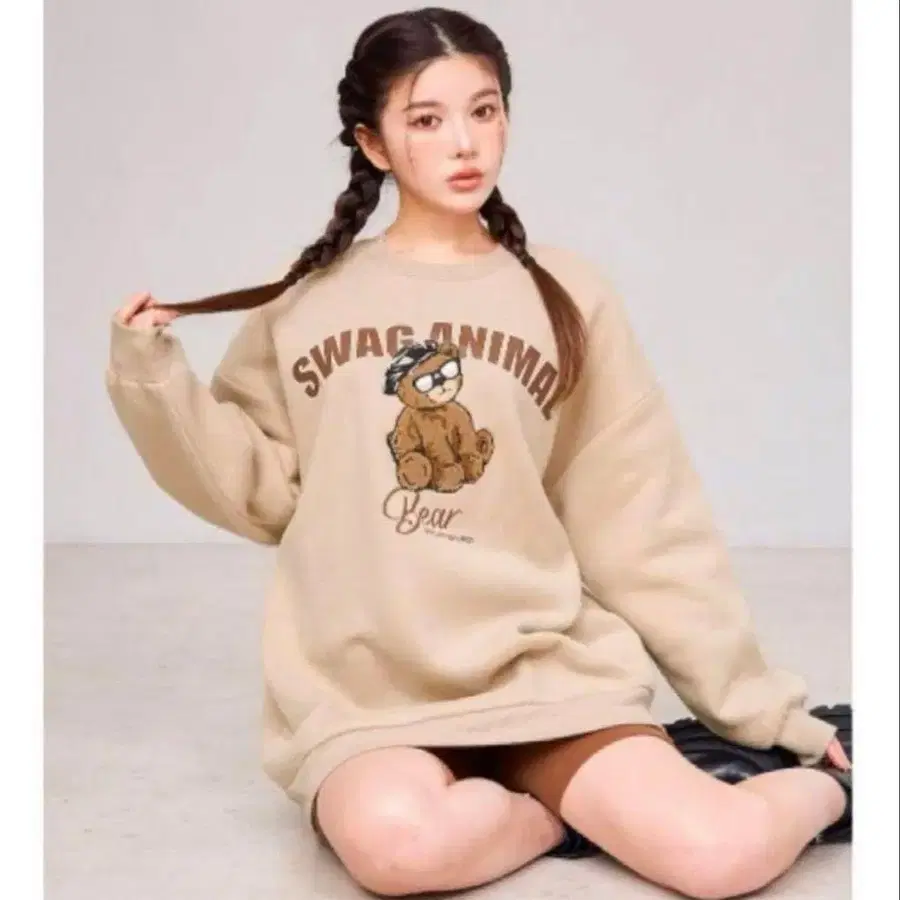애니멀 그래픽 맨투맨 풀오버 BEG