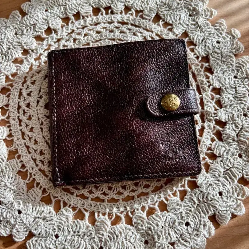 가죽 이단 접이식 지갑 다크 브라운 일비종떼 컴팩트 지갑