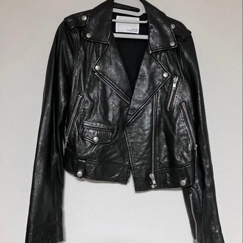 ROOM 306 CONTEMPORARY 블랙 가죽 라이더 자켓