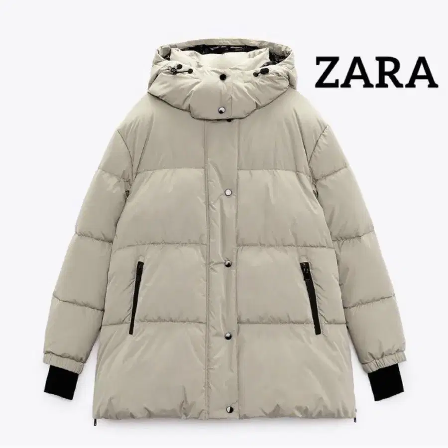 ZARA 퍼프 자켓 롱 기장 S 베이지 방풍 후드 오버 사이즈
