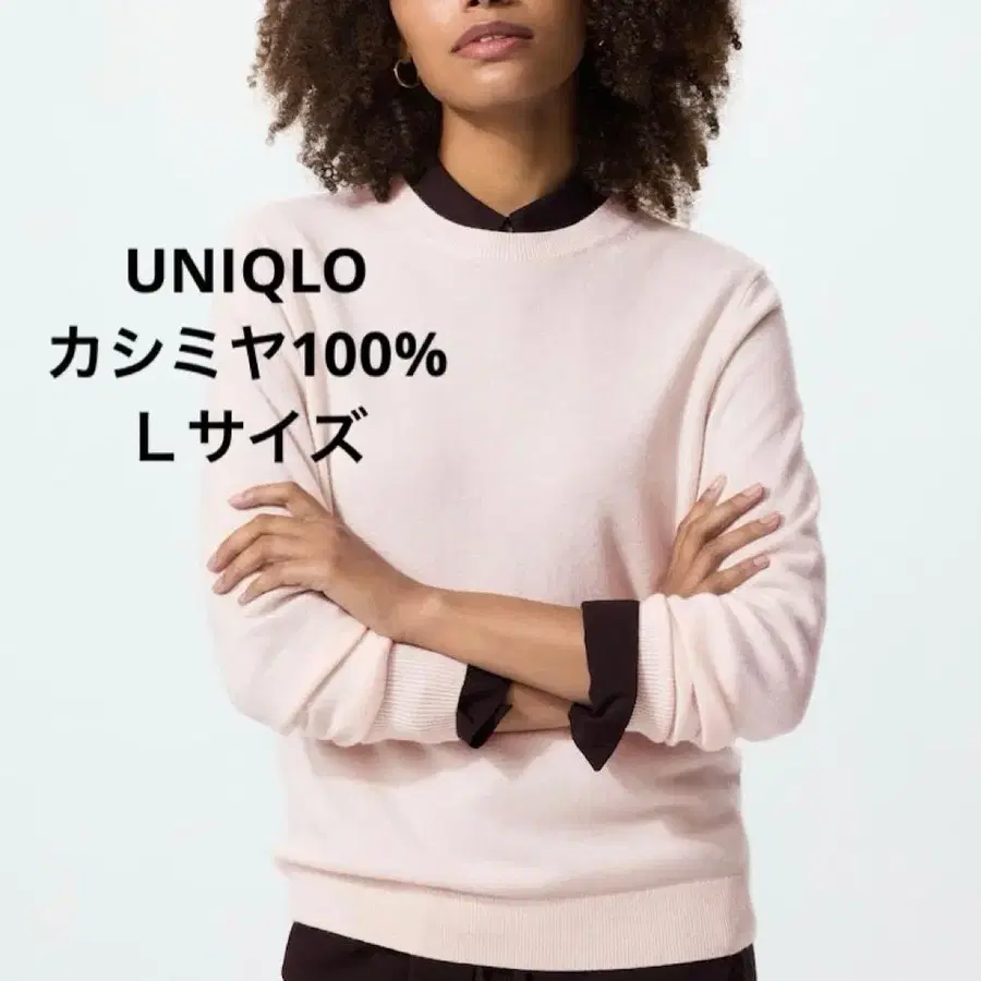 유니클로 캐시미어 100% 크루넥 스웨터 핑크 L