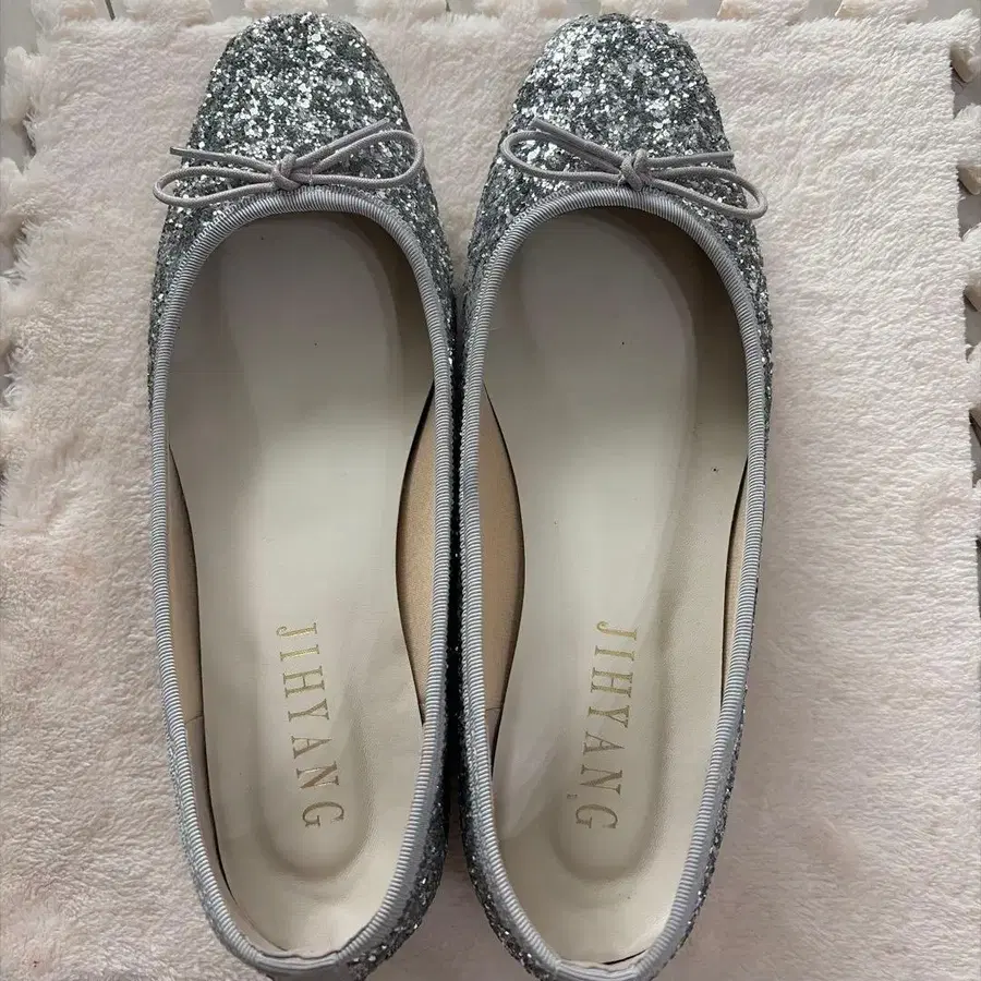 JIHYANG 실버 글리터 발레 슈즈