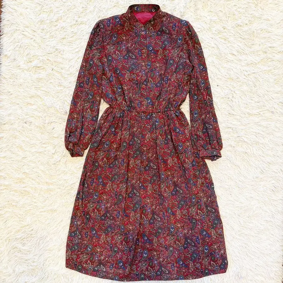 Onward 원피스 종아리 기장 쇼와 레트로 꽃무늬 올 패턴 레드 L