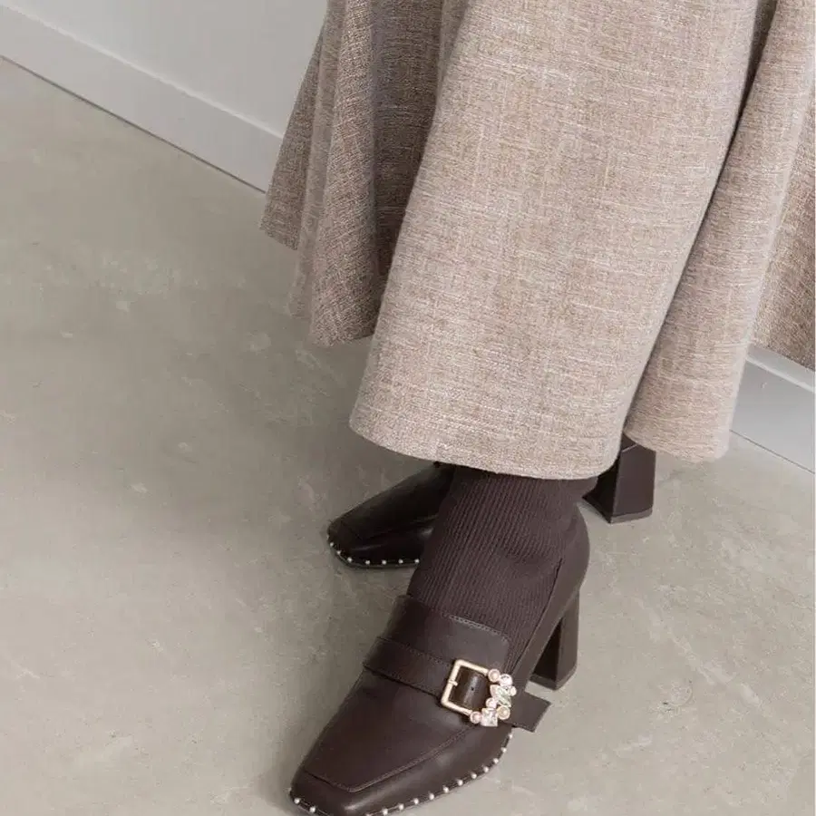 RANDA 니트 도킹 부츠 다크 브라운