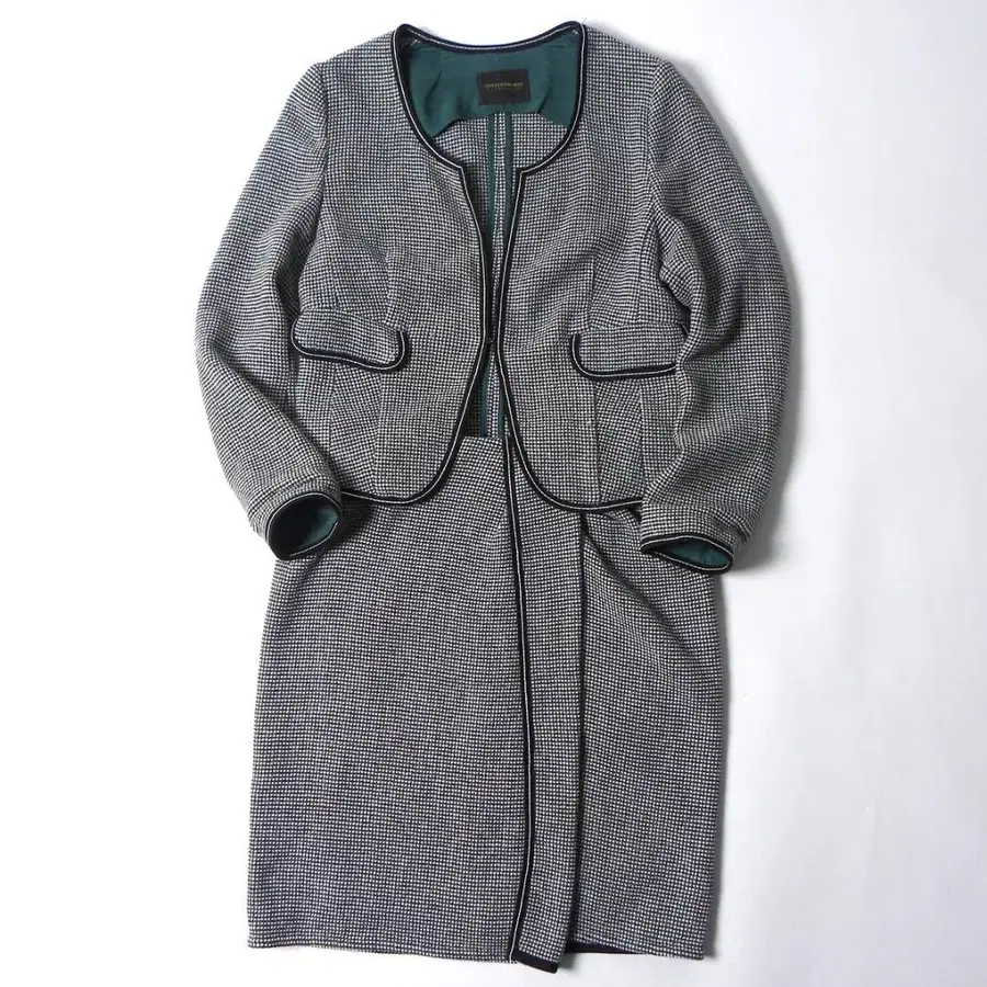 투모로우랜드 컬렉션 노카라 트위드 스커트 수트 포멀