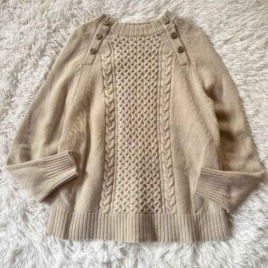 새상품급 Dessin (데셍) 아란 편직 사이드 버튼 울 니트 L 베이지
