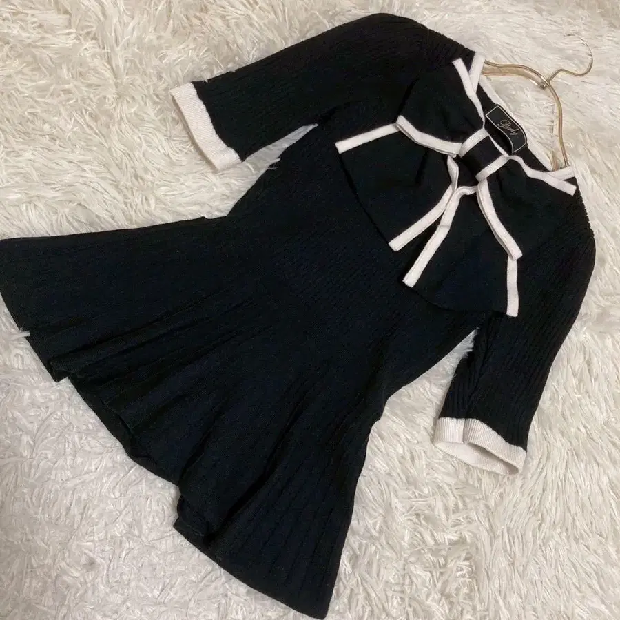 [새상품급] Rady 니트탑 블랙 S 리본 페플럼 귀여운 고급