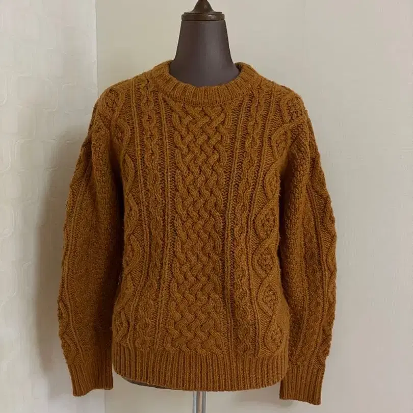브라운 케이블 니트 긴팔 스웨터