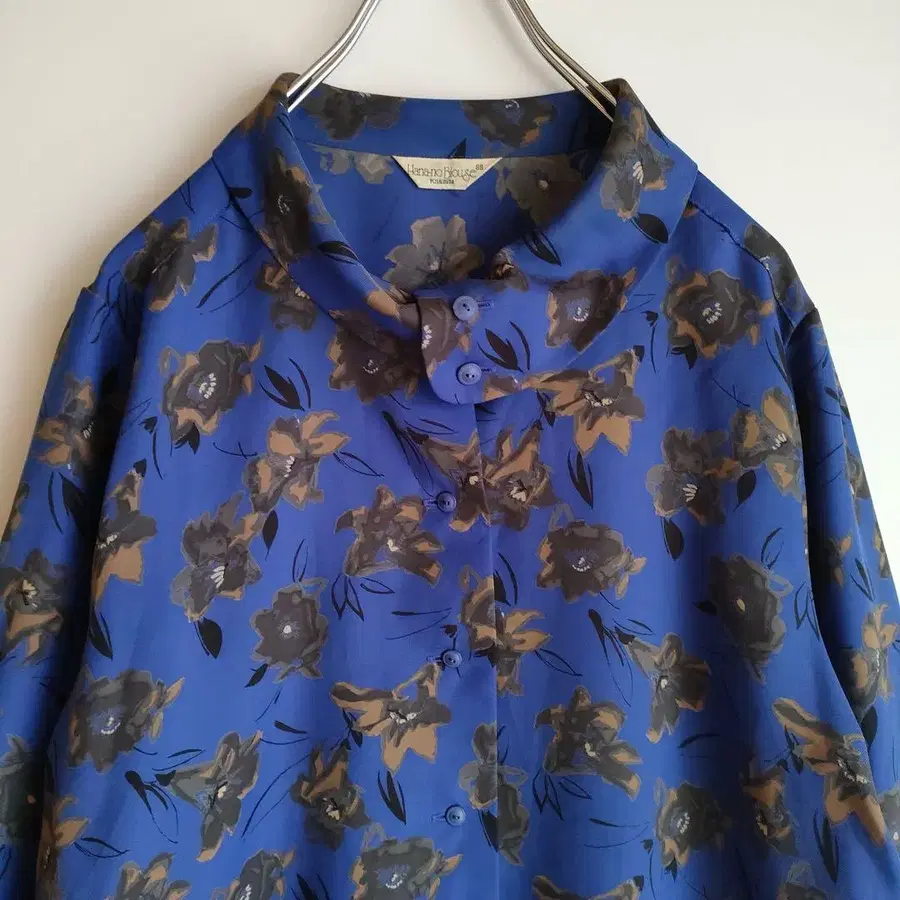 꽃무늬 롤 칼라 블라우스 블루 빈티지 카키