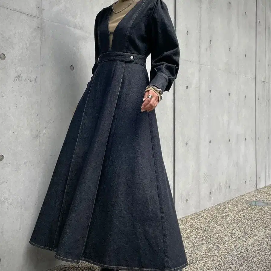 g'aime 앙제므 V넥 데님 원피스 블랙
