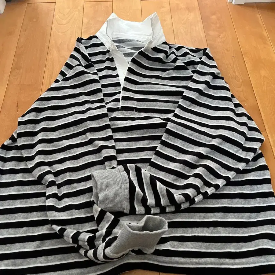 어반 리서치 스트라이프 패턴 긴팔 티셔츠 하프 지퍼
