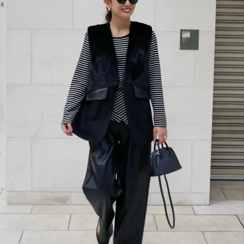 bebeod 인조 가죽 포켓 퍼 베스트