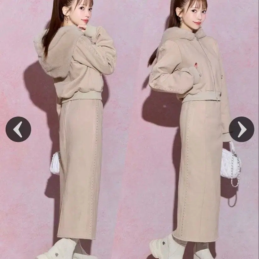 미셸 마카롱 퍼 후드티 타이트 스커트 셋업