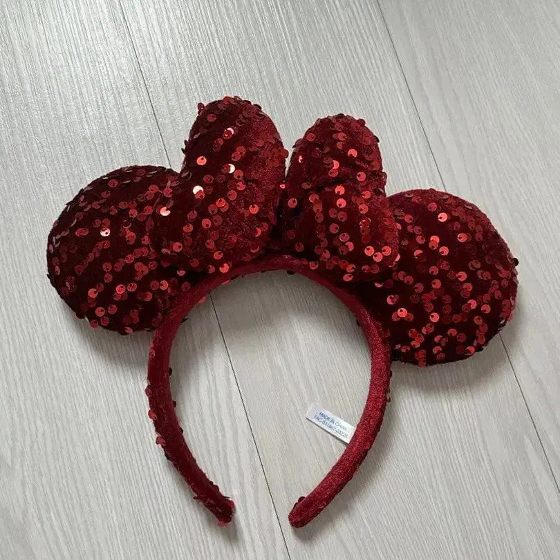 미키 모양 빨간색 스팽글 머리띠