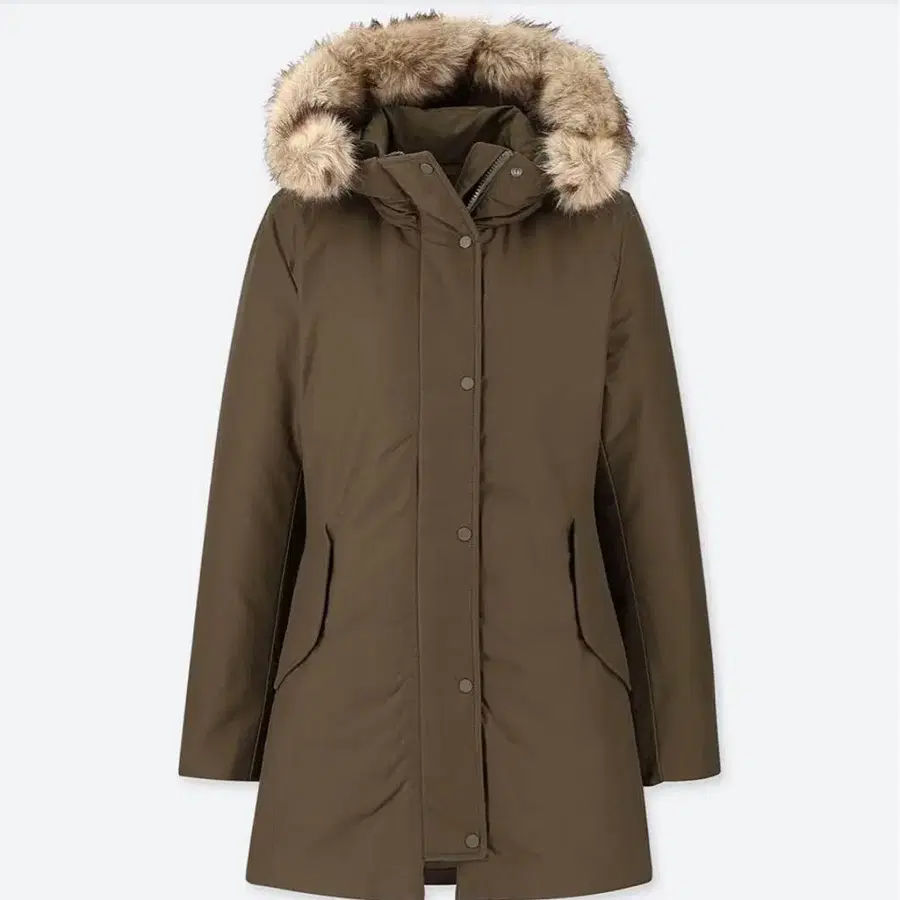 유니클로 논퀼트 다운 숏코트 M 카키 올리브색