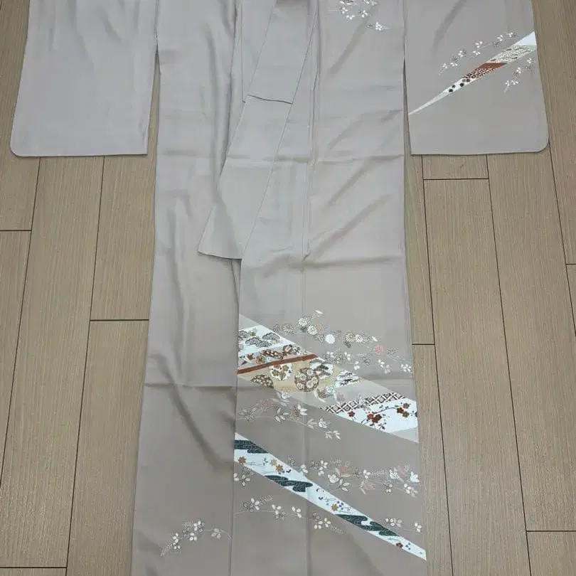 호몬기 츠케사게 베이지 꽃무늬 자수 송죽매
