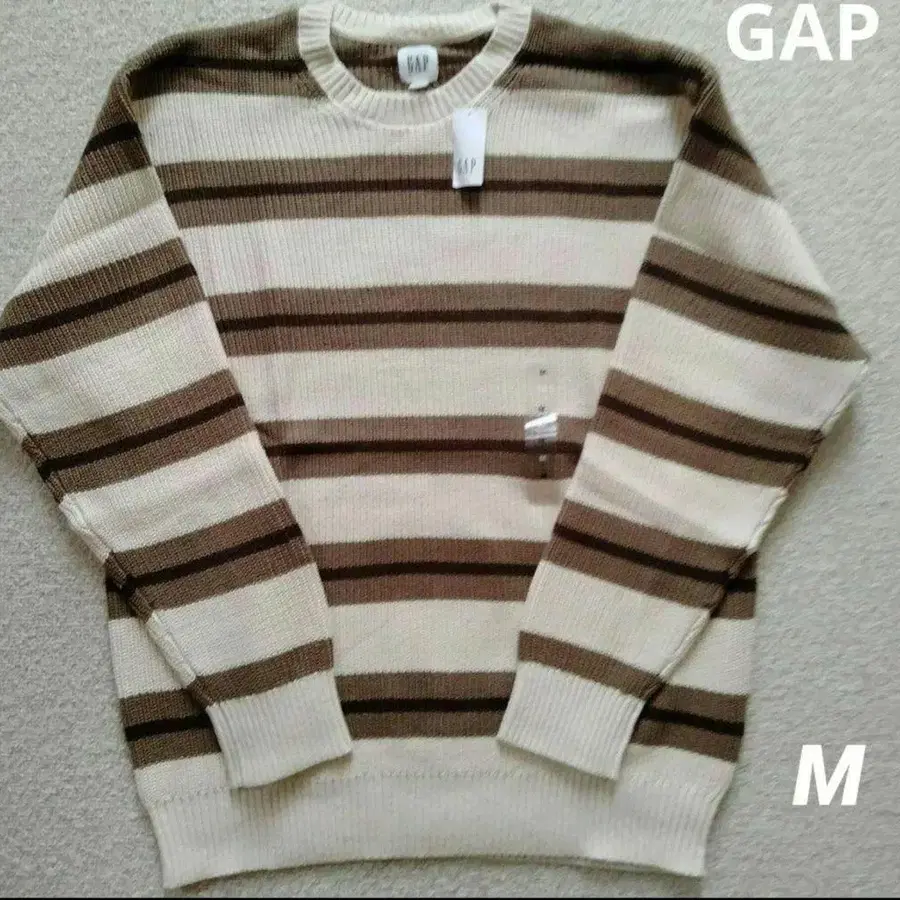 GAP 아이보리 브라운 스트라이프 니트 스웨터 M