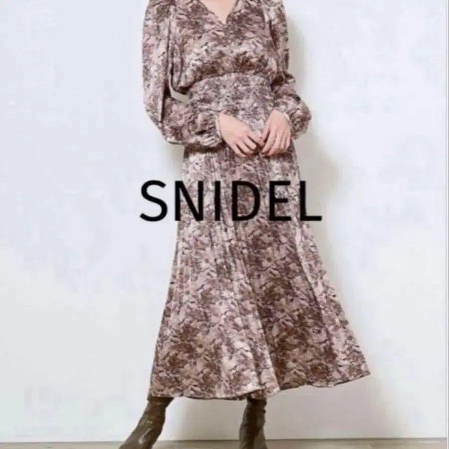 [새상품급] SNIDEL 자카드 프린트 원피스 꽃무늬 A라인 퍼프 슬리브