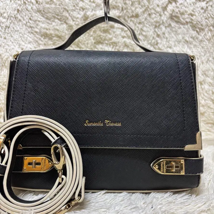 새상품급 초레어 사만다 타바사 에일 라지 2way 사피아노 가죽 블랙 검정 자립형 인기 멋진 가방 핸드백 숄더백 고급스러움 여성용 골드 금장 장식