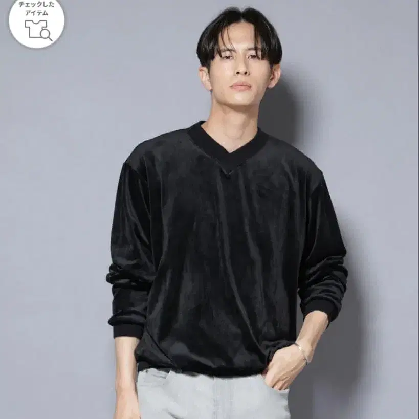 적당한 광택감이 매력인 벨로아 소재를 사용한 V넥 풀오버입니다. 적당히 여유 있는 실루엣과 V넥의 내추럴함이 어우러져 세련된 느낌을 연출합니다. 캐주얼한 맨투맨이지만 벨로아의 고급스러움으로 한 단계 높은 스타일링을 할 수 있는 아이템입니다.