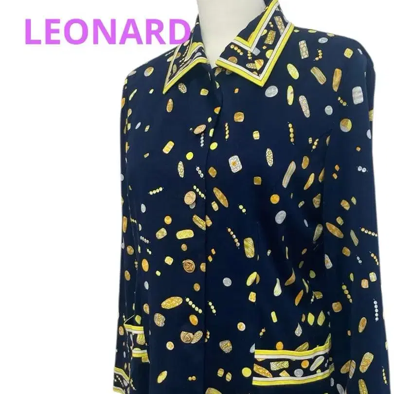 LEONARD 레오나르 긴팔 셔츠 상의 버튼 다운 골드 버튼 L
