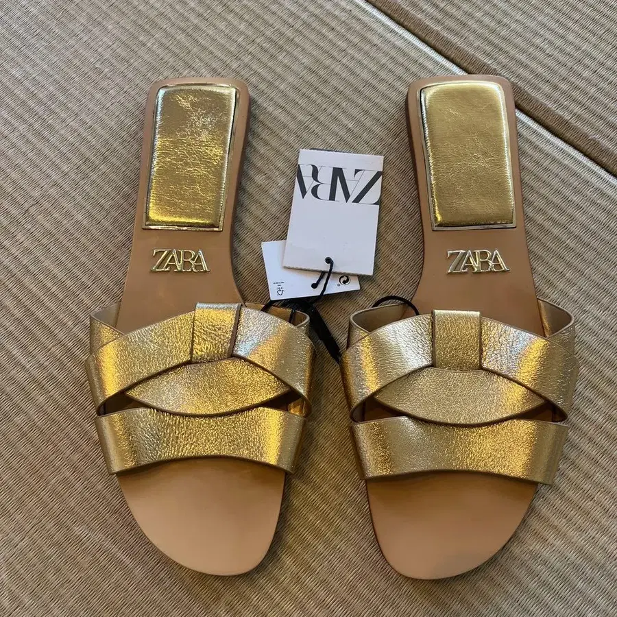 택 포함 새상품! ZARA 골드 샌들 38 25cm