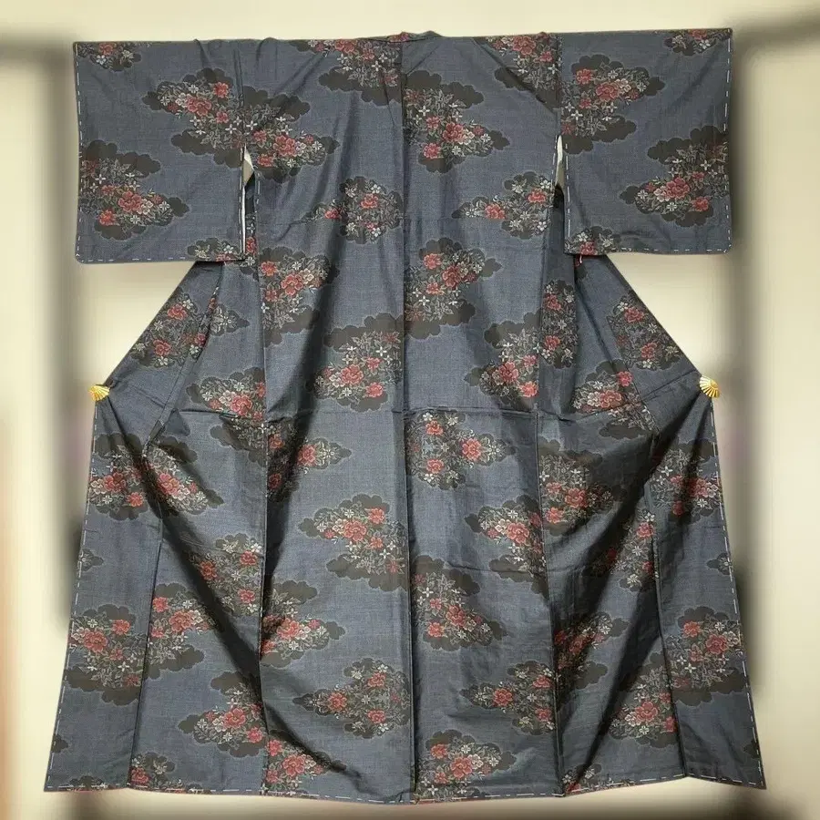 네이비 컬러 꽃무늬 구름 무늬 명주