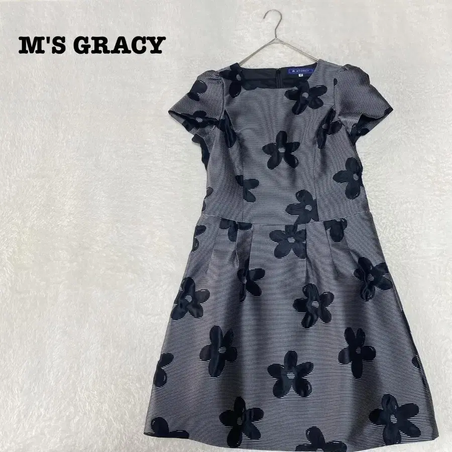 DE0024 [엠즈 그레이시] 원피스 [40] 꽃무늬 플레어 보더 그레이