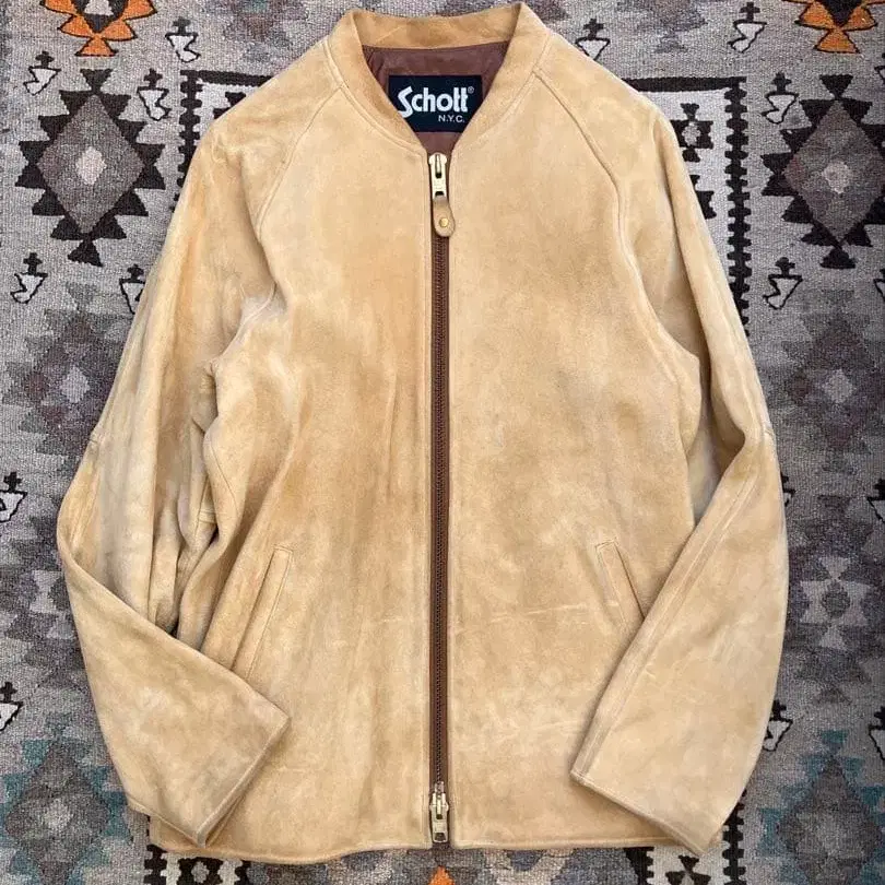 Schott 베이지 스웨이드 싱글 가죽 자켓