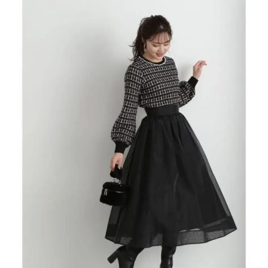 프로포션 바디 드레싱 오간자 개더 스커트 블랙