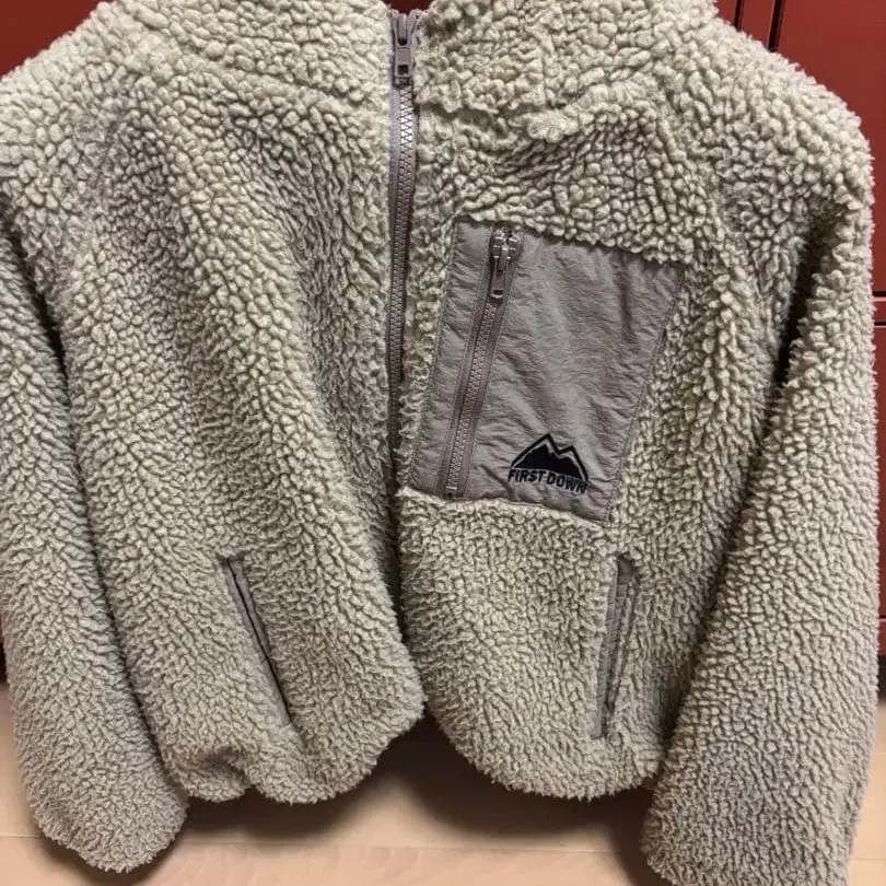 퍼스트다운 플리스 자켓 베이지 후드 부착
