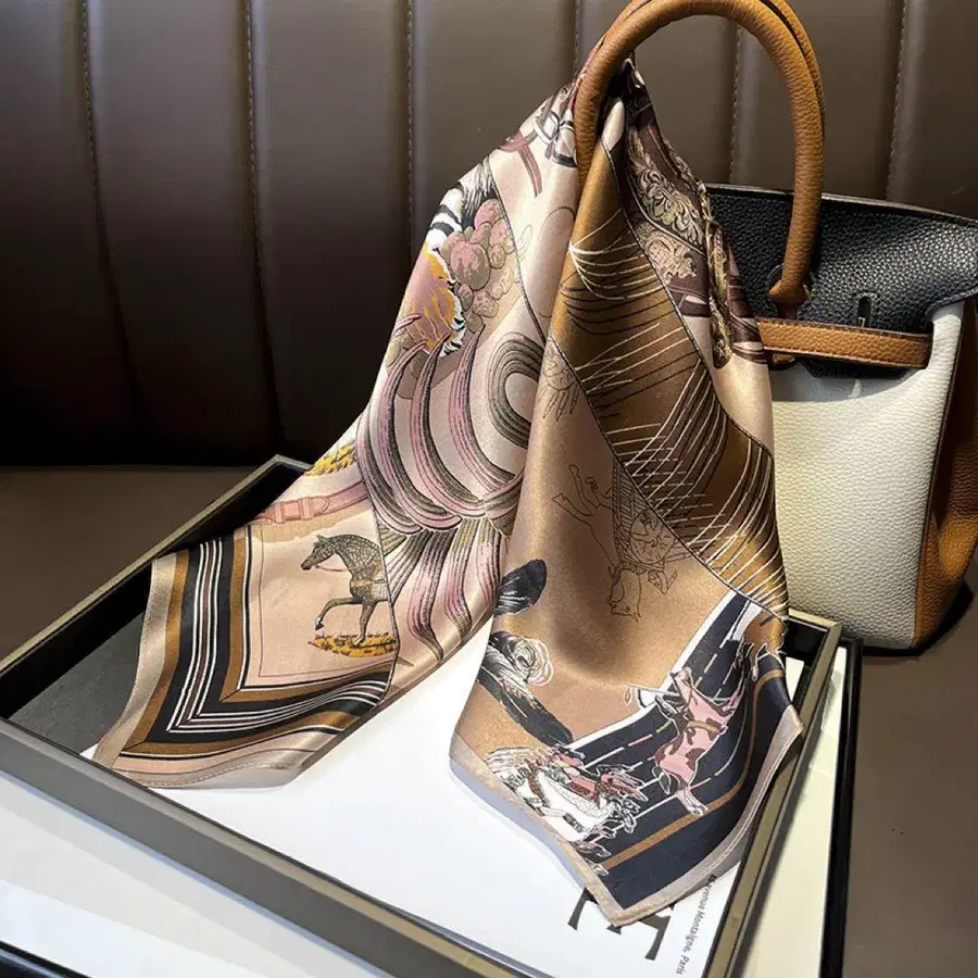 [고품질] 스카프 실크 100% 고급스러움 말 호랑이 인디언 럭셔리 고급