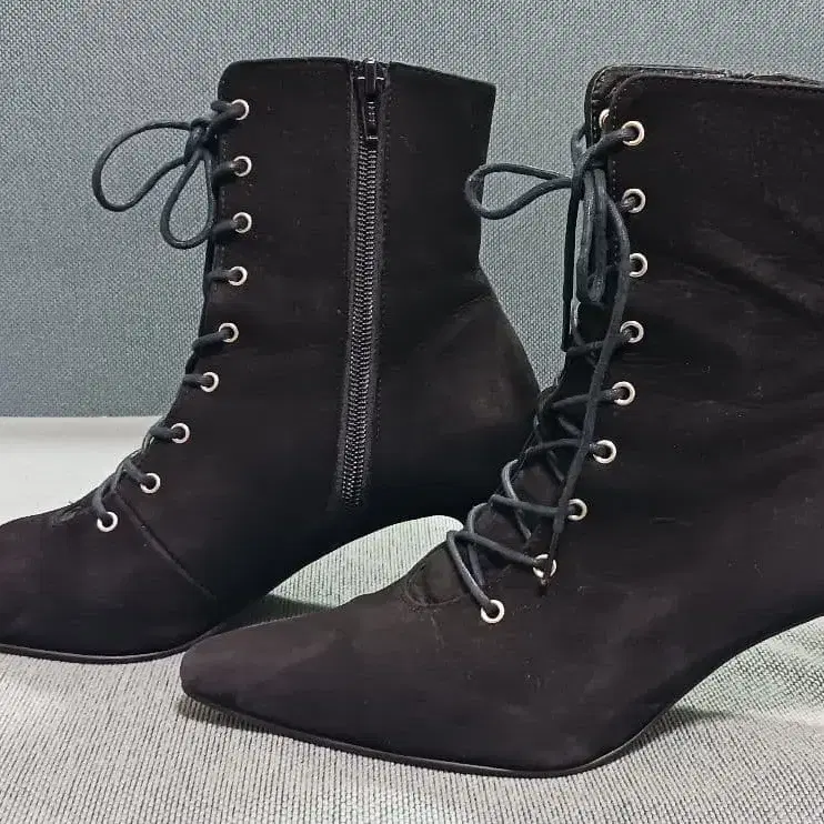 SHOE GALLERY OTA 블랙 스웨이드 레이스업 숏부츠